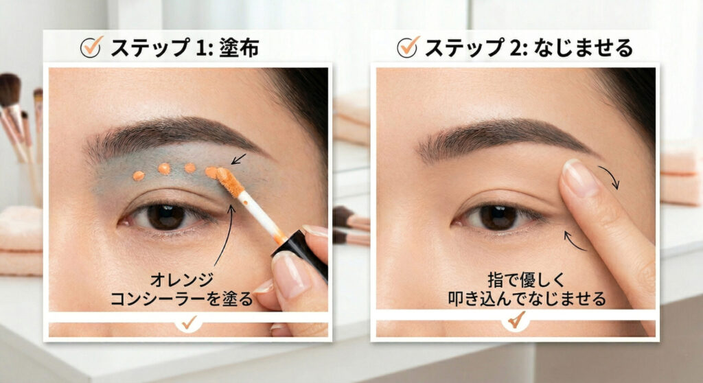 ここからは、実際にコンシーラーを使って剃り跡をカバーしていく手順をご紹介します。厚塗りにならず、自然な仕上がりを目指してぜひ試してみてください。