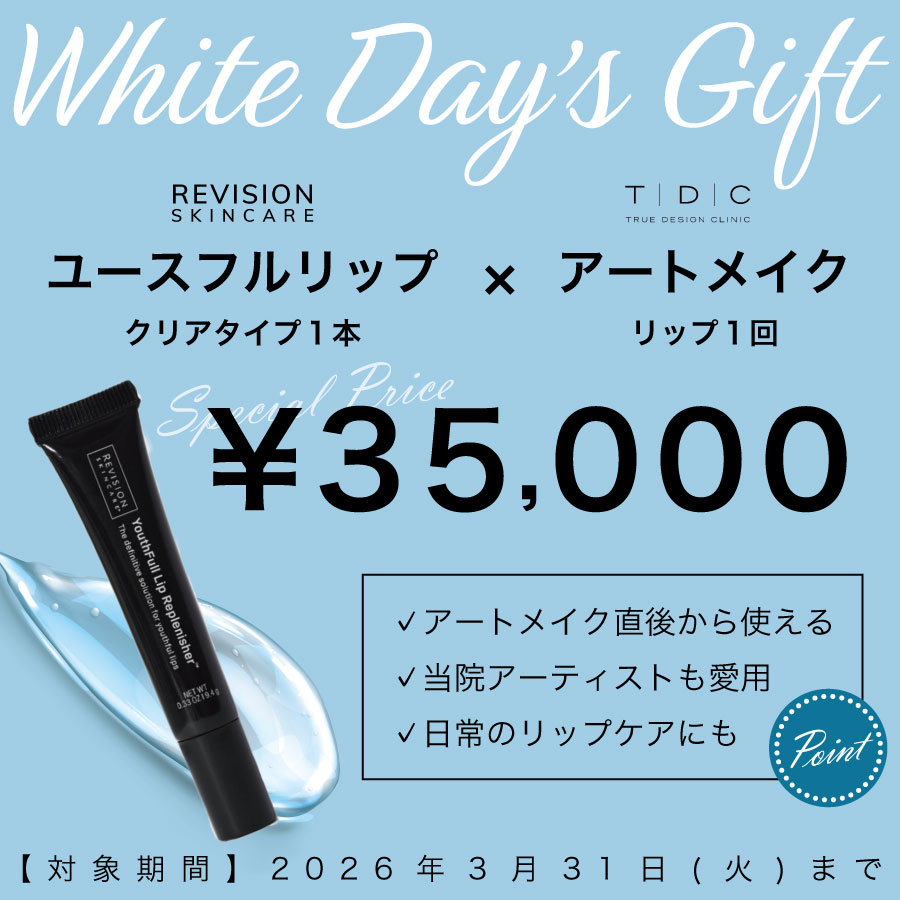 ![]() リップアートメイク(1回) + リビジョンユースフルリップ(クリア:1本) 《セット限定価格》 35,000円(税込) 期間:2026年2月15日(日)~2026年3月31日(火) 【リビジョンユースフルリップの効果】 ・アートメイクのアフターケア ・高保湿で乾燥や縦ジワをケア ・ふっくらとしたハリとボリュームアップ ・環境ストレスからの保護 |